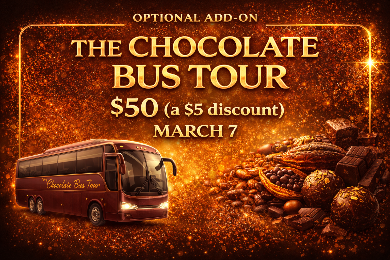 Your VIP ticket includes admission to the Global Chocolate Academy—workshop + tasting + cultural stories + creative reflection. March 14 • 8:30AM-2:00PM